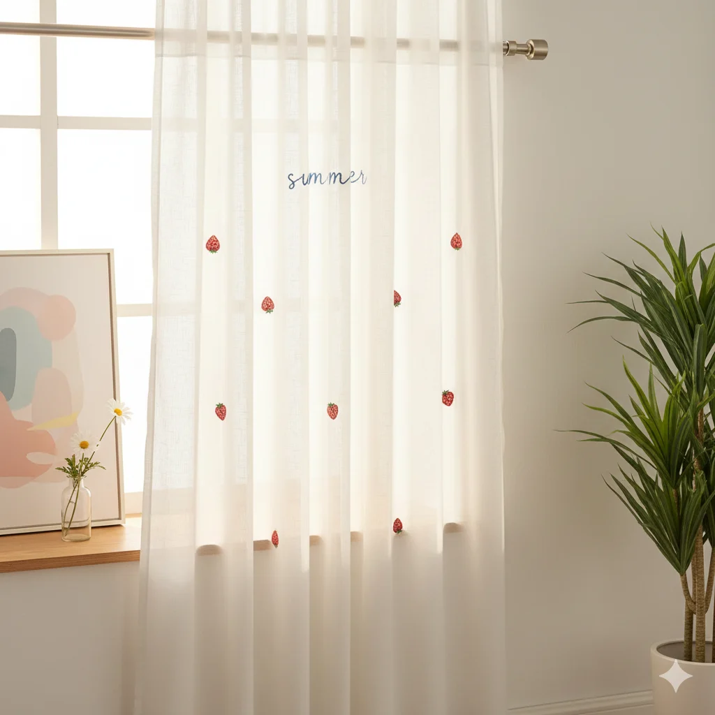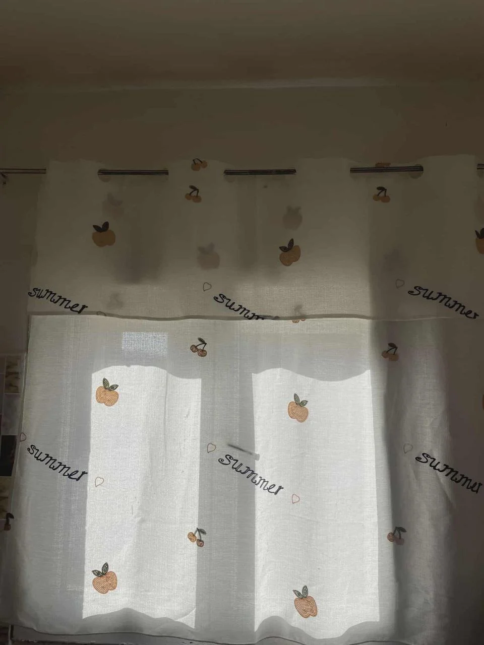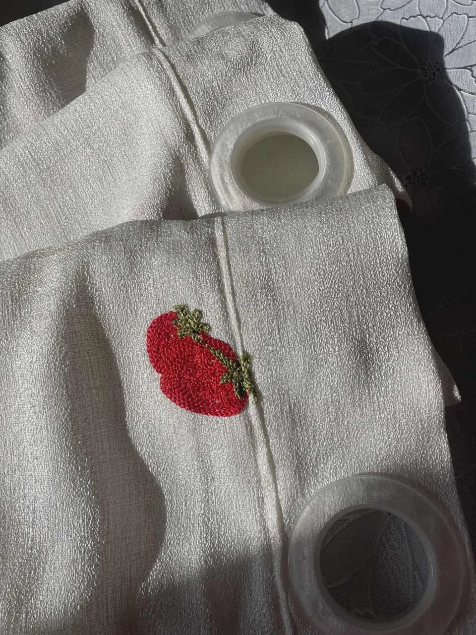 التطريز لي فيه جا متقون ومضبوط بزاف، بالألوان لي تزيد تفتح الجو وتعطي ستايل أنثوي، عصري وكلاس في نفس الوقت. الموديل كامل مبني على البساطة الراقية: خطوط نظيفة، تفاصيل قليلة بصح أنيقة، وديزاين يليق بأي مطبخ مودرن ولا كلاسيكي. الستار يزيد يعطي منظر شباب لأي باب مطبخ ولا بورت فونيتر، ويخلي المكان يبان نظيف وكامل ويعكس ذوق المرأة لي مركبتو.